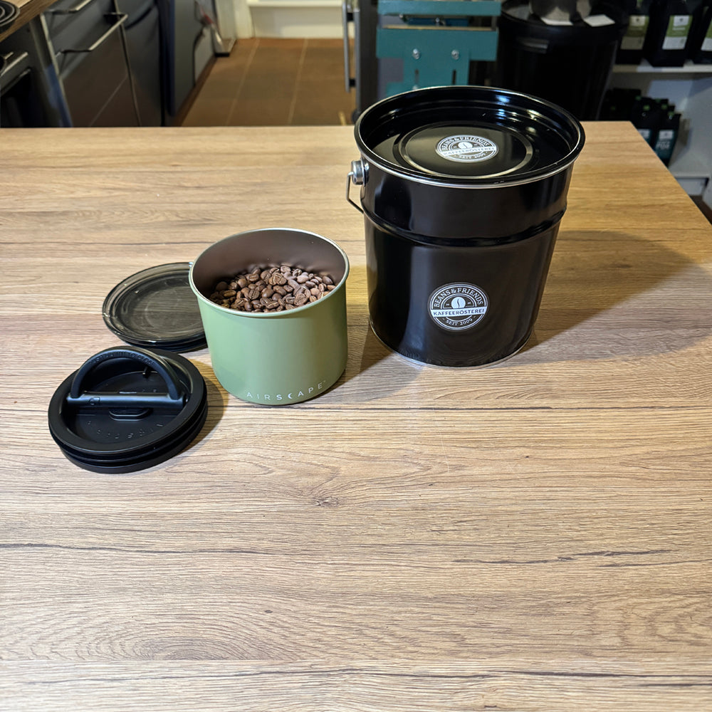 Wer bei uns vorbeikommt, kann mit gutem Gewissen genießen: Kundinnen und Kunden haben die Möglichkeit, ihre eigenen Dosen oder Behälter mitzubringen und Kaffee direkt nachzufüllen. Das spart Verpackung und ist die nachhaltigste Art, unseren Kaffee zu genießen.
